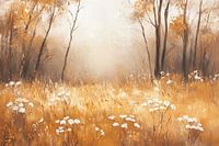 In zachte aardetinten straalt dit dromerige landschap kalme sereniteit uit. De zachte vormen van de bomen, omringd door gouden grassen en delicate witte bloemen, nodigen je uit om te dromen. Perfect voor de woonkamer, creëert het een harmonieuze sfeer die uitnodigt om te ontspannen en te blijven hangen.