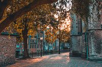 Herfstzonnetje naast de Grote Kerk van Dordrecht op de Pottenkade
