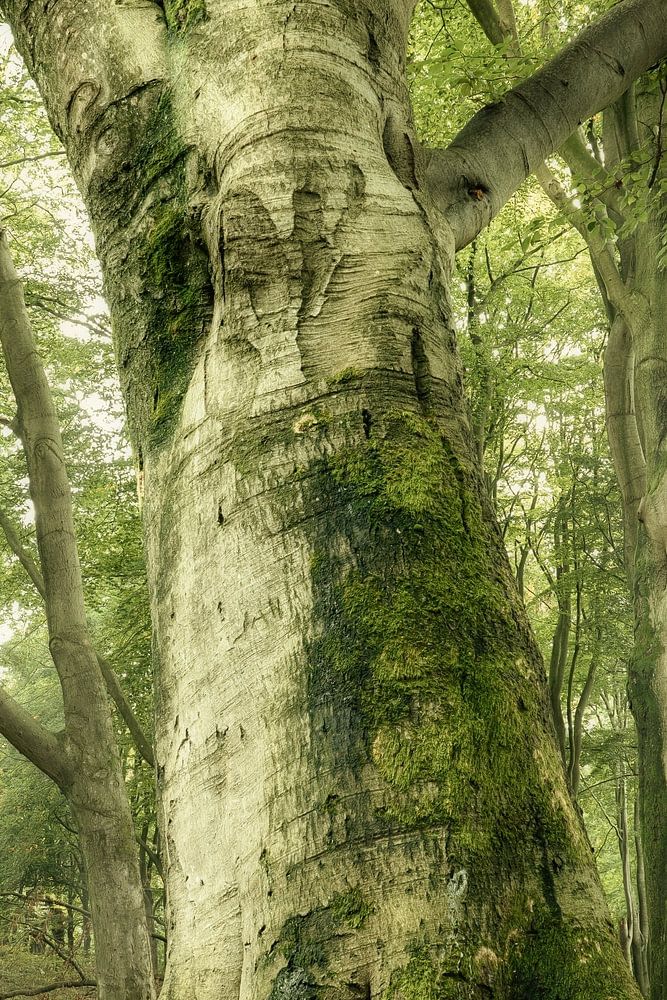 Deze foto is gemaakt in een bosgebied dat ik al mijn hele leven ken, maar toch is het altijd mogelijk om iets nieuws en spannends te ontdekken. Ik heb deze boom al vele malen gefotografeerd, in combinatie met vele andere, maar er nooit veel aandacht aan besteed, maar op deze dag had ik mezelf uitgedaagd alleen nieuwe composities te vinden en ik zag hoeveel karakter deze beuk eigenlijk heeft. Hij ziet er groots en machtig uit en dat deed me besluiten om van deze boom de hoofdpersoon in dit portret te maken. Ook de dynamische lijnen in dit beeld spraken me erg aan. De herfst stond op het punt te beginnen, maar had de kleur van het gebladerte nog niet veranderd, zodat het groen contrasteerde met de gevallen bladeren op de bosbodem.