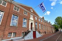 Prachtige groothoek opname van de Hermitage aan de rivier de Amstel in Amsterdam op een mooie zomerdag met wolken