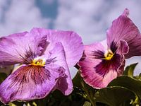 Ze zijn net uitgeladen, deze paarse violen. Daar staan ze nu, op de bovenste etage van een rolwagen, voor het tuincentrum. Moedig bieden zij het hoofd aan de harde wind.