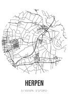 Zwart-witte landkaart, stratenplan of plattegrond van Herpen. Herpen is gelegen in de gemeente Oss, provincie Noord-Brabant. Op de stadskaart zijn alle openbare wegen in Herpen opgenomen. Verder is de kaart voorzien van de coördinaten van het centrum van Herpen.