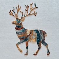 Een unieke en speelse weergave van een hert, opgebouwd uit kleurrijke quilling-elementen die het dier vormgeven met elegantie en ritme. De fijne rolletjes papier in diverse tinten – van zacht beige tot diepblauw en warm rood – creëren een levendige textuur en geven het hert een gevoel van beweging en lichtheid. Het minimalistische witte canvas benadrukt het ambachtelijke karakter van het werk. Perfect voor liefhebbers van papierkunst, moderne decoratie en creatieve expressie.