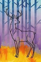 Een sfeervol kunstwerk dat een sierlijk hert toont, omringd door een betoverend kleurrijk bos. Dit moderne ontwerp combineert abstracte lijnen met levendige tinten, waardoor het perfect past in elk interieur. Ideaal als blikvanger in een woonkamer of slaapkamer, deze digitale illustratie brengt een gevoel van rust en natuur in huis.…
