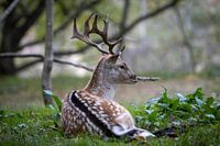 Foto van ee hert aan rusten in de natuurgebied.
