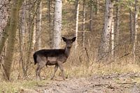 Nieuwsgierig damhert in het bos van Westenschouwen in de winter.