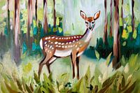 Hert in kleurrijk bos schilderij van Art & Soul Creations