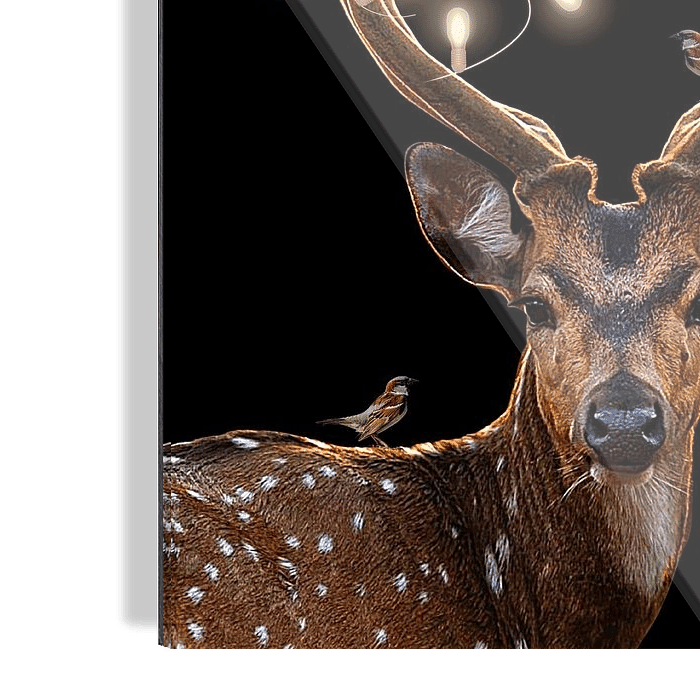 Koop dit vogel kunstwerk Hert met lampjes van Postergirls op canvas, aluminium dibond, (ingelijste) fotoprint, behang en ArtFrame, op maat geprint in Fine-Art kwaliteit.