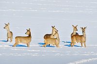Koop de foto Herten in een veld in de winter van Karin Jähne op canvas, aluminium dibond, (ingelijste) fotoprint, behang en ArtFrame, op maat geprint in Fine-Art kwaliteit.