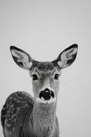 Dit betoverende zwart-wit portret van een hert straalt een kalme en natuurlijke elegantie uit. De fijne details van de vacht en zachte ogen van het hert zijn vakkundig vastgelegd, waardoor het beeld een warme en uitnodigende sfeer krijgt. Perfect voor natuurliefhebbers en kunstliefhebbers die een elegant en rustgevend tintje aan hun huis willen geven.