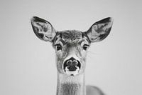 Dit betoverende zwart-wit portret van een hert straalt een kalme en natuurlijke elegantie uit. De fijne details van de vacht en zachte ogen van het hert zijn vakkundig vastgelegd, waardoor het beeld een warme en uitnodigende sfeer krijgt. Perfect voor natuurliefhebbers en kunstliefhebbers die een elegant en rustgevend tintje aan hun huis willen geven.