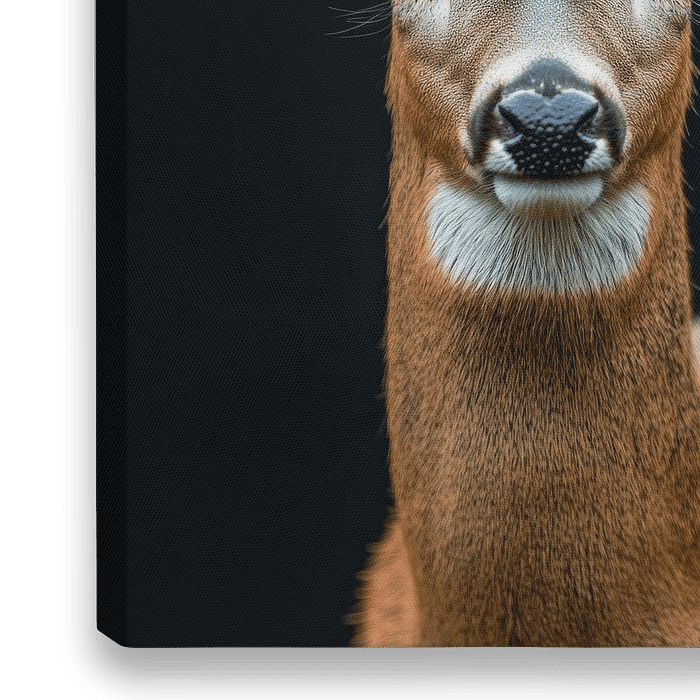 Een majestueus hert met indrukwekkende, vertakte horens straalt een kalme gratie uit terwijl zijn levendige ogen de kijker recht aankijken. Deze fascinerende afbeelding van wilde dieren brengt liefde voor de natuur in je huis en zou perfect passen in een woonkamer of studeerkamer, waar het een rustgevende sfeer kan creëren.