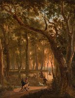 Hertenjacht in een bos, Jan Hackaert