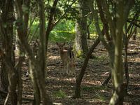 Door een doorkijkje van een bomen groep zag ik deze hertjes bij elkaar staan. Ze houden zich mooi schuil in de schaduw van de bomen.