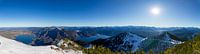 Panoramisch uitzicht vanaf de top van de Herzogstand over de Kochelsee en de Walchensee