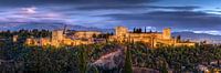 De foto toont het historische Alhambra van Granada, dat in het centrum van de Andalusische stad ligt.