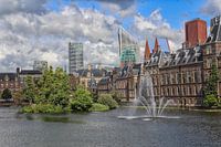 Het Binnenhof, de Hofvijver en de fontein in Den Haag