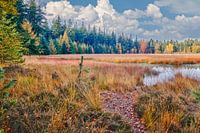 Een karakteristieke beeld van Drenthe in de herfst, prachtige vennen midden in het bos. Een landschap vanuit de ochtend wat je alleen tegenkomt in de provincie Drenthe.