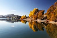 Herfstlandschap weerspiegeld in de Forggensee in Allgäu, Beieren, Duitsland.