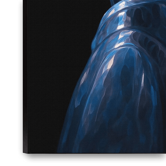 Jouw gekozen kunst op doek, gespannen in een aluminium frame. Snel en eenvoudig te verwisselen voor een frisse uitstraling en helemaal zoals jij het wilt.