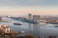 Het IJ richting het oosten met het Muziekgebouw aan het IJ en het Mövenpick hotel
