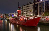 Het Lichtschip Vessel 11 in de Wijnhaven in Rotterdam. Dit werk is onderdeel van de fotocollectie van MS Fotografie. Klik rechts op "Alle werken" om meer werken uit de collectie te zien.