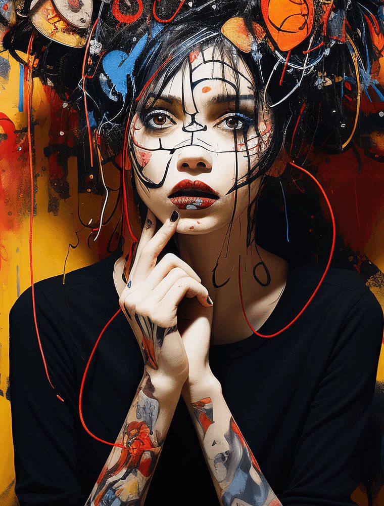 Dit schilderij uit de collectie 'Het Ontsluiten van de Geheimen van de Ziel' kijkt in de diepten van de menselijke ziel met doordringende ogen. Het vangt de essentie van zelfontdekking en introspectie, waarbij kijkers worden uitgenodigd om de raadselachtige uithoeken van hun eigen innerlijke wereld te verkennen.