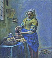 Het melkmeisje, ook wel De keuken- of melkmeid genoemd, is een schilderij van de Hollandse meester Johannes Vermeer uit circa 1660. Slimme Kunst heeft een reproductie van dit werk gemaakt in de stijl van de Sterrennacht van Vincent van Gogh uit 1889.