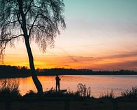 Terwijl de zon langzaam wegzakt achter de rietkragen van het Nannewiid, verandert de Friese winterlucht in een palet van diep oranje en zacht lila. De ijzige wind valt even stil, waardoor het wateroppervlak verandert in een rimpelloze spiegel die de laatste warmte van de dag vasthoudt.