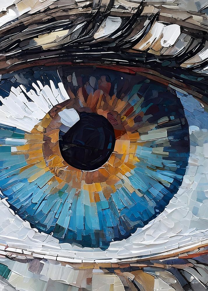 Een abstract schilderij van een vrouwelijk oog in close-up. Gemaakt in de stijl van een olieverfschilderij.