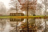 Het Park in Rotterdam op een mistige dag in december. Gelegen aan de voet van de Euromast is Het Park, in de negentiende eeuw aangelegd naar een ontwerp van vader en zoon Zocher, een van de oudste parken van de stad. Gehuld in nevelen en weerspiegeld in de vijver zien we hier links het Heerenhuys en rechts het Koetshuis, beiden tegenwoordig in gebruik als horeca.