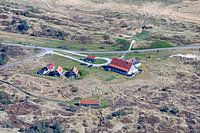 Luchtfoto van het Posthuys vlak bij de Kroon's Polders op Vlieland, bekend als (onder andere) hotel en pannekoekenhuis.