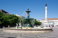 Het Praça de D. Pedro IV met fontein, monument voor D. Pedro IV en op de achtergrond het Teatro Nacional D. Maria II.