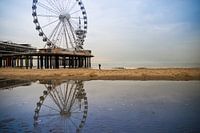 Dit reuzenrad staat op de pier van Scheveningen. Je ziet een prachtige reflectie in het water
