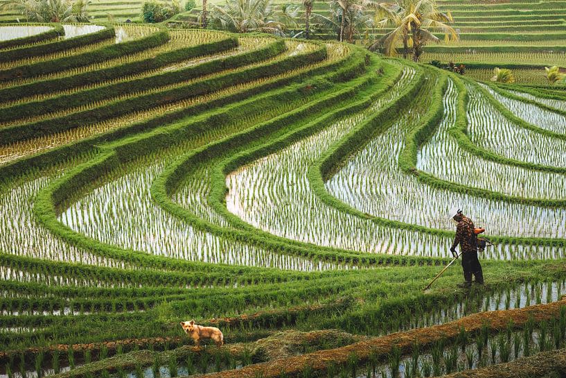 Dit beeld is voor mij de definitie van Bali: eindeloze groene terrassen die tegen de heuvels aanliggen. Wat ik zo mooi vind, zijn de kleine details die het verhaal vertellen. De boer die rustig het gras aan het maaien is en de trouwe hond die even verderop de wacht houdt. Het zijn deze kleine, alledaagse momenten van verbinding tussen…
