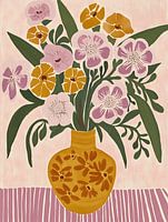 In dit kunstwerk worden bloemen tot leven gebracht in een mix van retro en vintage kleuren en tinten, die prachtig samensmelten en een rustige sfeer oproepen.