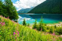 In volle bloei pronkt het Versagtmeer met zijn kleurrijke pracht. Bloeiende lupines en kristalhelder water vormen samen een wonder.