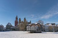 Het mooie Vrijthof in Maastricht is van zichzelf al heel mooi, maar heeft bedekt onder een laagje sneeuw nog meer! De Sin Janskerk en de Sint Servaas Basiliek staan mooi in de zon, en het geheel doet sprookjesachtig aan.