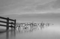 Schitterende luchten en eindeloze vergezichten. In weer en wind, verstopt tussen de wolken, reflecterend op een spiegelende Waddenzee, een nooit vervelend landschap. Zo zou je deze foto kunnen beschrijven. Het hekwerk wat je op de foto ziet verdwijnt als het ware in de zee. De foto is uitgevoerd in grijstinten voor een nog rustiger…