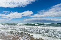 De westrand met golven en wolken op Fischland-Darß.