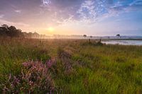 De zon kwam net onder de wolken door op een nazomerochtend op de Hasselsvennen.