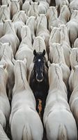 Een parel binnen de categorie paarden fotografie. Wat "normaal" aangeduid wordt met het zwarte schaap. Krijgt het paard toch wel een andere vorm van krediet in deze foto. Het staat symbool voor kracht en niet altijd meegaan met de stroming. Ook is het een prachtige vorm van elegantie, daadkracht en eigenzinnigheid.