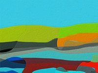 Gekleurde vierkanten en rechthoeken vormen het abstracte landschap.