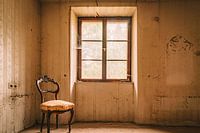 Opname van een oud herenhuis, een adellijk landgoed met antiek meubilair, een verloren plaats