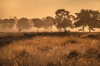 Zomaar een landschap in het mooie ochtendlicht. In de verte zie je het silhouet van een wandelaar.