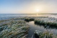 Bevroren gras op het drooggevallen Wad bij het Friese Paesens-Moddergat.