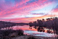 Dit is het Voorste Goorven in Oisterwijk. De lucht is roze, blauw en paars net voordat de zon opkomt.