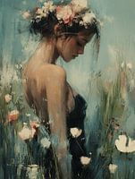 Het bloemenmeisje, modern en abstract portret in de stijl Nieuw Landelijk. Een bijzondere blikvanger voor je interieur! Kies zelf het formaat en materiaal bij dit werk en maak het helemaal naar wens.