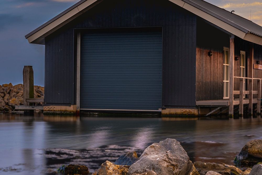 Het boothuis van de KNRM in Ouddorp, Zeeland. De Koninklijke Nederlandse Redding Maatschappij helpt en redt mensen in nood op het water. De vrijwillige redders en reddingboten zijn 24 uur per dag beschikbaar voor spoedeisende hulp en niet-spoedeisende hulp. De KNRM is geen overheidsdienst, maar een zelfstandige organisatie met een eigen financiering, die in stand wordt gehouden door donaties, giften en nalatenschappen.