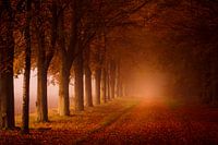 Herfst op een mistige ochtend in de bossen nabij Gasselte, Drenthe.